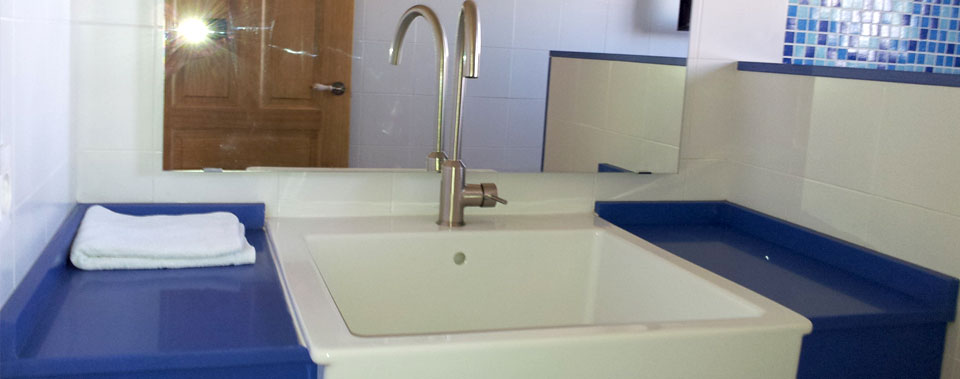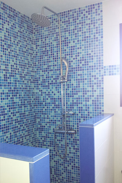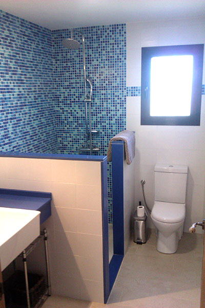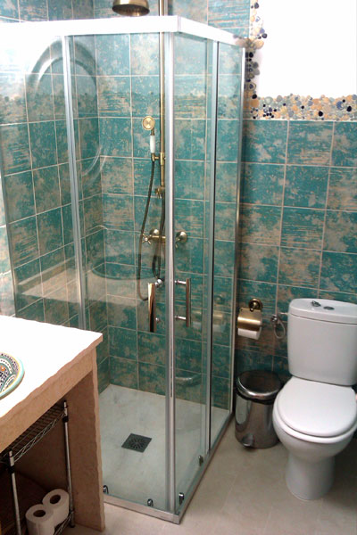 Un baño grande, luminoso con amplia ducha y chorro de lluvia. El otro baño es en suite, también con chorro de lluvia y con mucha luz. Ambos son muy bonitos y alegres.
