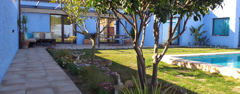 La parcela tiene 300 metros de los cuales 210 son de jardín. Orientación sureste con bonitas vistas al Parque Natural de la Breña. Es muy agradable.