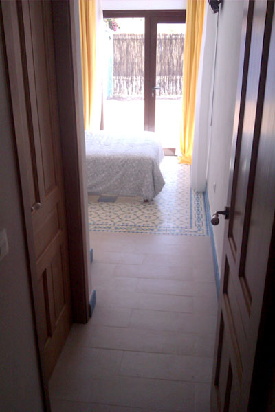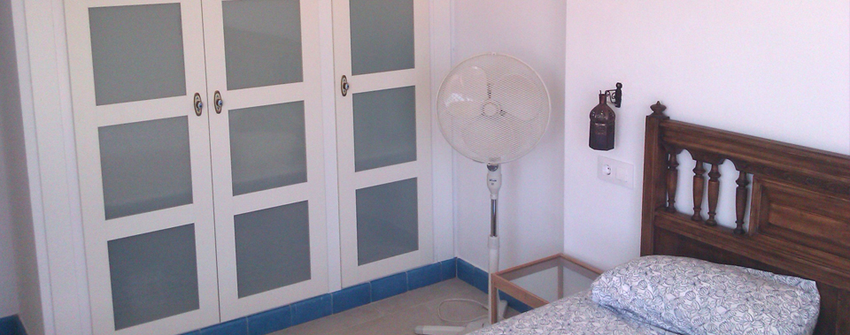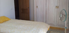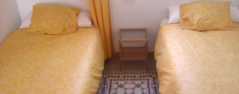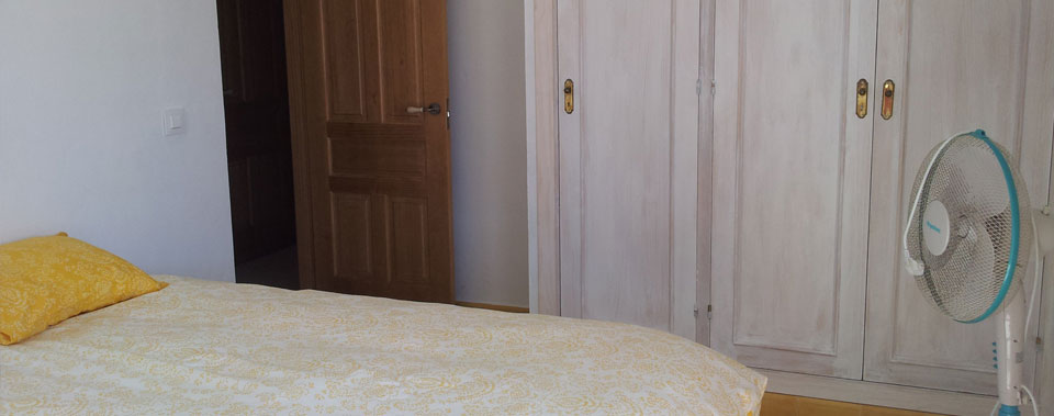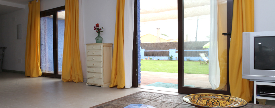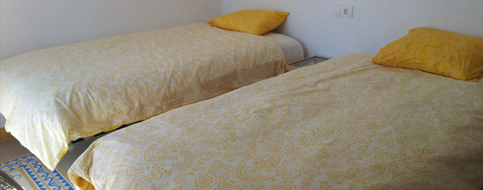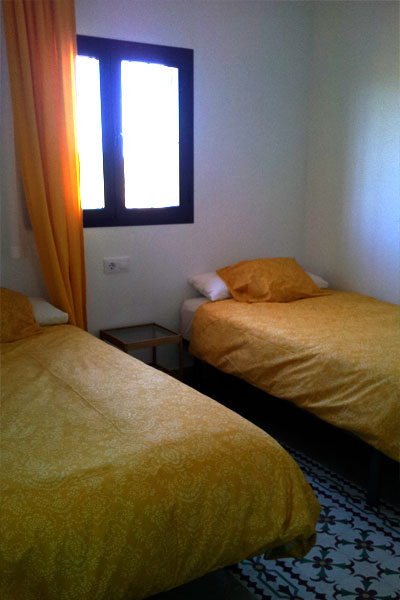 Cuenta con tres habitaciones muy luminosas. Dos de ellas con salida directa al jardín y la tercera con vistas al campo. La habitación principal tiene baño privado y cama de matrimonio de 1,50x2m. Las otras dos habitaciones tienen dos camas individuales de 1,05x 2m. Todas las camas son cómodas y espaciosas.